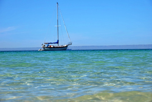 Cela nous rappelle notre séjour aux Maldives, bon la température de l’eau est différente ici mais comme point en commun nous retrouvons de l’eau cristalline passant du vert, au bleu ciel et bleu foncé, le sable fin sous nos pieds….