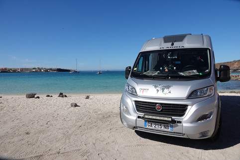 Arrivés sur place, nous retrouvons nos amis Thierry et Nadège (les Baroudcar). A côté de nous se trouve un autre fourgon immatriculé en France. Il fait bon, encore chaud et sommes stationnés face à la mer. Bref un endroit de rêves pour passer une bonne nuit après notre petite mésaventure de fin de journée.