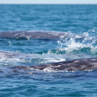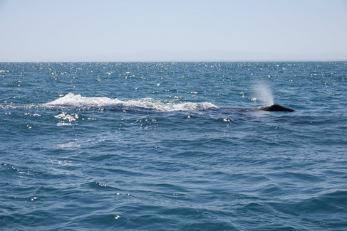 Puis apparait le dos d'une baleine qui replonge sous nos yeux, le bateau ralentit pour laisser place au théâtre tout en conservant une certaine distance, puis on se dirige vers un autre souffle et puis encore un autre. Le spectacle est grandiose, magique de voir ces baleines, jaillir de l'eau, le temps d'une brève apparition pour replonger ensuite suivis de près de leurs bébés.