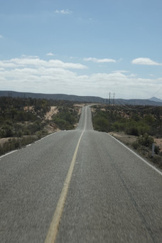 Nous reprenons la route pour se rendre sur la côte Est de la péninsule de Baja California. A peine sortis de Guerrero Negro, nous retrouvons des paysages désertiques avec une longue route étroite où il faut redoubler de vigilance en croisant des camions qui arrivent en sens inverse. Nous passons des postes de contrôles gérés par l'armée et poursuivons la route à travers des décors magnifiques.