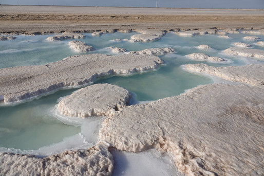 Revenus dans la minibus qui va nous ramener à l'agence, nous faisons un arrêt à côté de la zone de bassins d’évaporation et de concentration de la plus grande usine de sel solaire (par évaporation de l’eau de mer) du monde. Ces salines à l'origine naturelles étaient déjà connues des navigateurs espagnols et anglais. L'exportation s'étend aux USA comme au Japon.