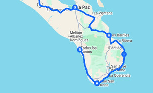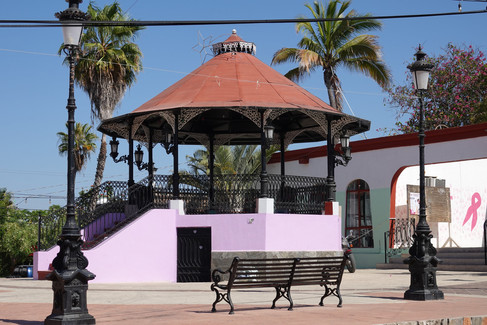 Nous décidons de reprendre la route depuis Cabo San Lucas en direction de la Paz. L'unique route passe par Todos Los Santos. Cette petite ville est classée « Pueblo Mágico » au Mexique. Contrairement à des destinations plus touristiques comme Cabo San Lucas, la ville offre une ambiance bohème, tranquille et authentique. Ses rues pavées, ses anciens bâtiments coloniaux et ses petits cafés lui donnent beaucoup de charme sans oublier la place centrale devant la Mission.