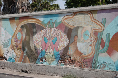 Au croisement d'une rue, on aperçoit des peintures murales et notre curiosité nous pousse à aller voir ces peintures.