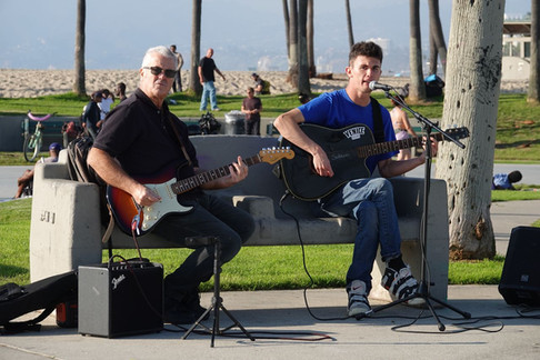 Alors que nous longeons la grande plage faite de sable fin, des passionnés de surfs s’amusent à affronter les vagues du pacifique sous les regards des secouristes prêts à intervenir. En revenant vers l’avenue, nous marquons un arrêt devant des pro du skate qui font de véritables figures acrobatiques. Plus loin, on arrive devant le ‘muscle beach Venice’, une aire de musculation en plein air où des personnes musclent encore et encore leurs pectoraux. C’est là que Schwaezenegger avait commencé à s’ entrainer. Chacun ici retrouve son sport favori sans compter les personnes qui courent à pieds ou font du vélo sur de belles pistes aménagées.