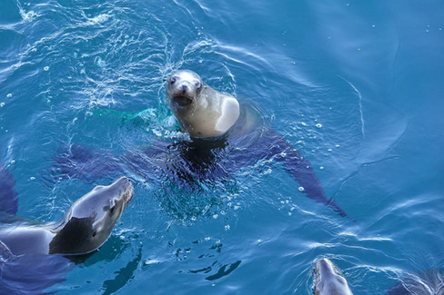 De l'autre côté de ce centre touristique, les quais donnent sur une activité portuaire avec des bateaux de pêches. Sur place nous arrivons devant un véritable aquarium naturel sous nos yeux. De jeunes phoques se plaisent à jouer dans l'eau cristalline du port sous la surveillance des adultes.