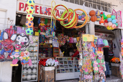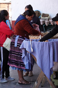 Au fur et à mesure qu'on approche du centre, on entend les rideaux métalliques des magasins s'ouvrir. Les présentoirs sont mis dehors. Nous entrons dans un magasin de tissus. Le textile de Patzcuaro fait partie des traditions artisanales les plus riches de l’état de Michoacán, fortement influencées par la culture purépecha. On y trouve des couleurs vives, motifs traditionnels et le fabrication est artisanale.
