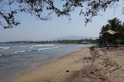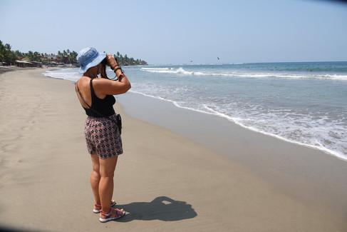 Bercés au son du bruit des vagues situées à trente mètres à peine, nous sommes réveillés tôt, la chaleur est déjà au rendez-vous. Après un copieux petit déjeuner, nous échangeons quelques mots avec nos voisins américains, adeptes de surf et partons à la découverte des environs en longeant la plage avec une mer qui est en train de se retirer.