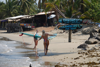 La plage est immense, on oublie le côté 'Zen' du camping et on se met à beaucoup aimer le coin. Des surfers, Il y en a partout dans l'eau, sur la plage prêts à affronter les vagues. Question décors, il n'y a pas de grands resorts mais plutôt des cabanes, petits hôtels, campings.