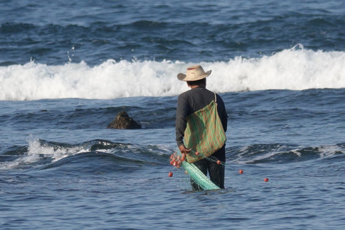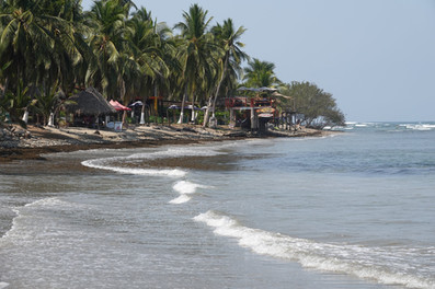 Nous prenons ensuite la route en direction de la côte pacifique, Il va nous falloir deux bonnes heures de route. Nous quittons l'état de Michoacan pour entrer dans état de Guerrero, réputé pour ses plages célèbres. Nous longeons alors la côte de l'océan pacifique en traversant des petits villages où la pauvreté est bien présente. Les locaux installent du matériel de cuisine à ciel ouvert et proposent des petits repas. D'autres mettent en vente des fruits comme papayes, noix de coco, mangues.