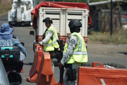 Après une quarantaire de kilomètres nous arrivons à la ville de Uruapan et faisons quelques courses dans un magasin Wallmart situé dans un grand centre commercial. La 'guardia nacional' est omniprésente dans beaucoup d'endroits de la ville. Cette force de sécurité fédérale au Mexique, créée en 2019 a pour but de lutter contre la criminalité et sécuriser les routes par des check-point et autres missions.