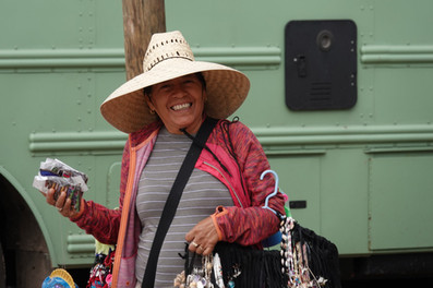 En revenant à Kokopelli2, nous croisons des marchands ambulants. Des locaux viennent vendre des tapis aux couleurs vives typiques du Mexique, d’autres circulent à faible vitesse avec leur voiture et vendent du pain et pâtisseries locales. Un peu plus loin, une voiture roule de camping-car à un autre proposant la vente de poisson et crevettes.