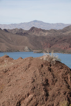 Sortis de Lake Havasu, sous une température de 34 degrés, nous roulons sur une route très agréable qui longe le fleuve du Colorado encastré au milieu de montagnes arides et découpées.