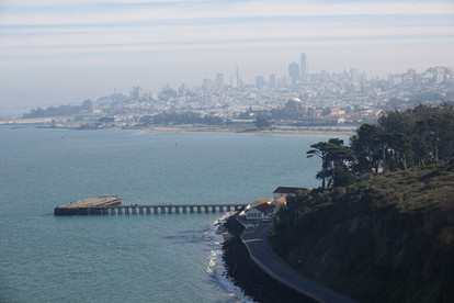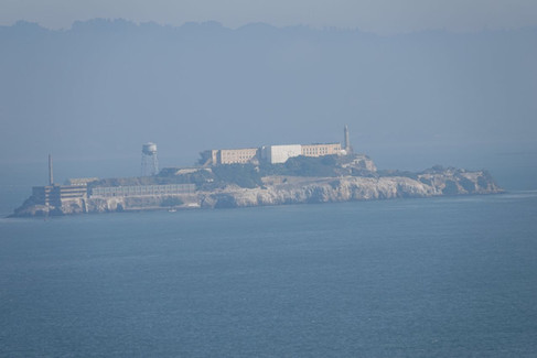 En chemin, on aperçoit l'île d'Alcatraz, prison de haute sécurité devenue site historique aujourd'hui. Sur la droite, le cœur de la ville de San Francisco se dessine avec ses buildings.