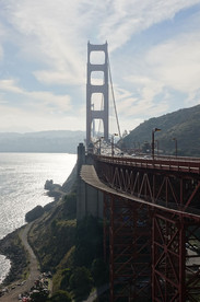 Nous stationnons au ‘Vista Point’, point de belvédère donnant sur le pont de San Francisco, officiellement appelé Golden Gate Bridge. C’est l’un des monuments les plus emblématiques des États-Unis et un symbole mondial de la Californie.