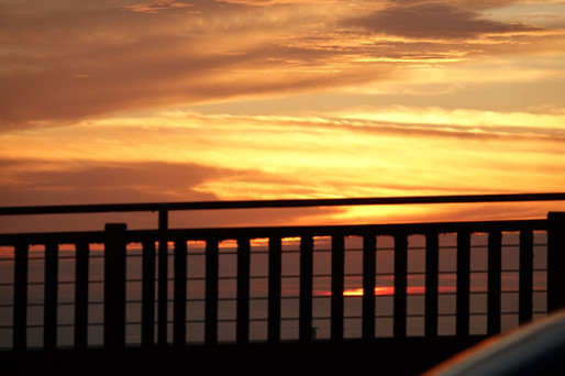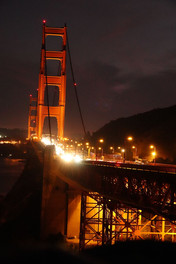 Le soir approche, nous refaisons la traversée du pont à pieds avec comme dernier spectacle un soleil couchant et au loin le coeur de San Francisco qui s'illumine.