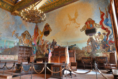L’intérieur est tout aussi remarquable : fresques colorées, salles décorées dans l e style hispanique, carrelages peints à la main et boiseries finement travaillées. Ce bâtiment qui sert toujours de tribunal est un ‘must’ à visiter lors d’un passage à Santa Barbara.