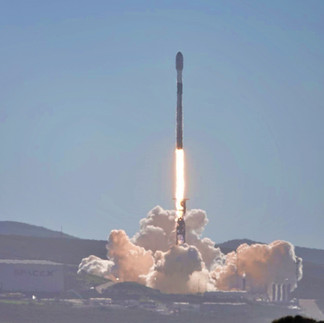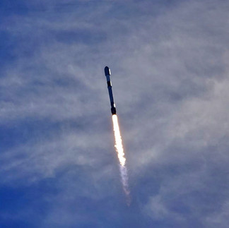 Dans un épais nuage de vapeur d'eau, la fusée 'Falcon 9' poussée par ses réacteurs se soulève du sol et monte vers le ciel. Le bruit dégagé par ce décollage réussi ne parvient qu'un instant plus tard. Le spectacle est magnifique.